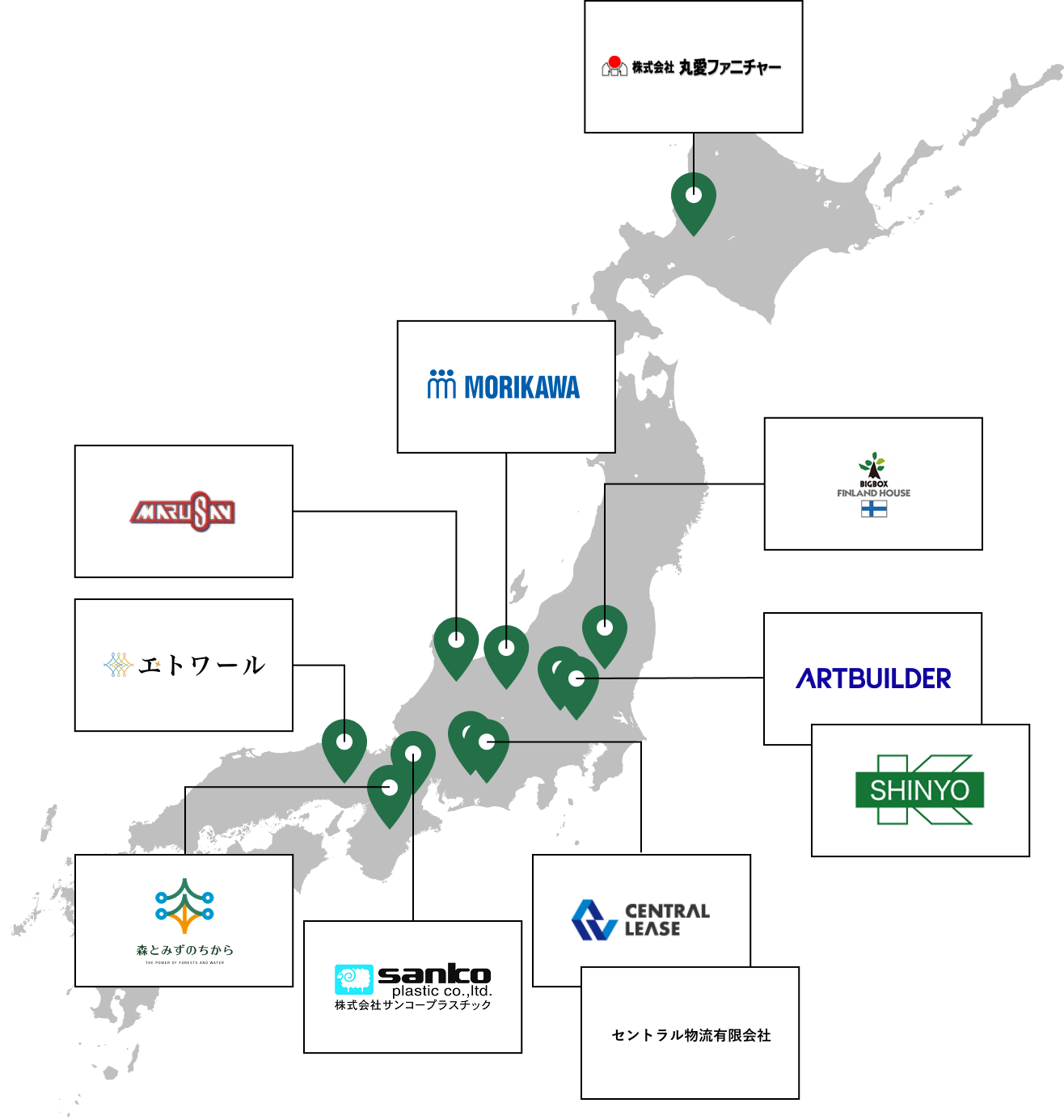 当社グループにご参画いただいた会社のご紹介です。北海道から九州まで幅広くご参画いただいております。